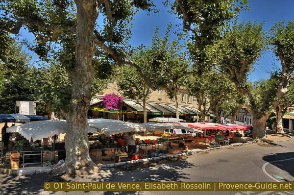 Le marché des producteurs de Saint-Paul-de-Vence se trouve place du Général de Gaulle. C'est à la place du jeu de boules, à l'entrée du village (carte). On trouve des marchands sur 7 étals. On y vend fruits et légumes ainsi que produits de producteurs et produits locaux.