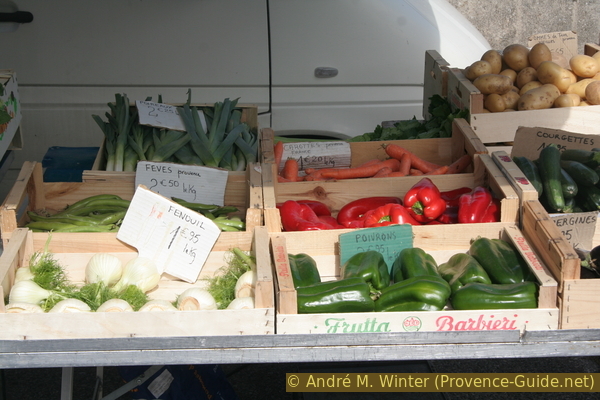 Gemüsekisten am Markt in La Couronne