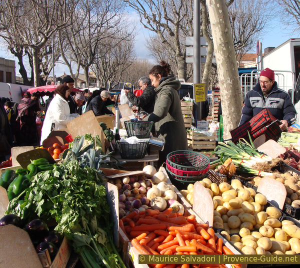 Vegetable stand at the market in Arles in winter