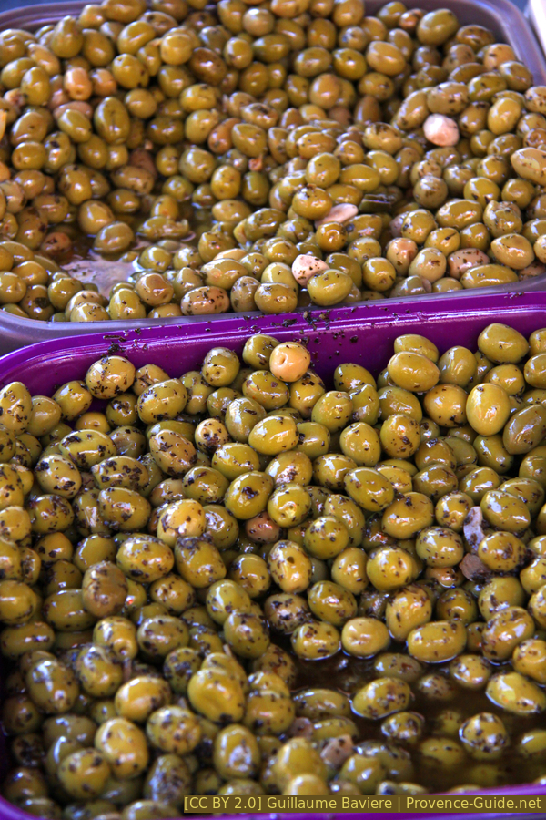 Gewürzte Oliven am Markt in Apt