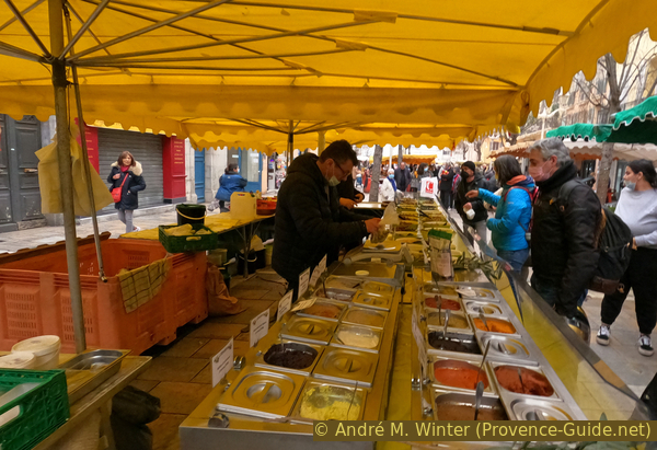 Stand d'olives sur le grand marché au cours Lafayette à Toulon