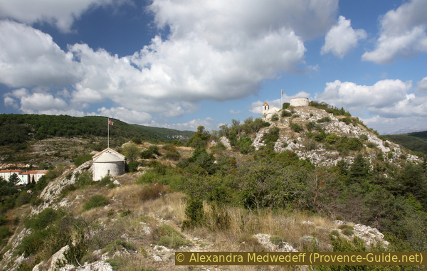 Drapeau provençal et vue vers la Chapelle St.-Jean-Baptiste